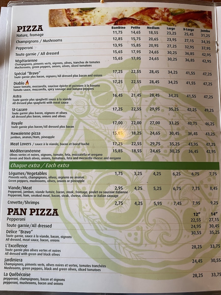 Restaurant Bravo St-Lazare Pizzeria Menu (Update 2025)